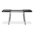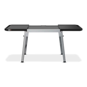 Le support est équipé de rails latéraux Weber WorksMC, compatibles avec divers accessoires à enclencher (vendus séparément), tels qu’un panier à condiments, des porte-accessoires ou un support de sac poubelle. Les deux tablettes latérales se rejoignent lorsque la plancha est retirée, offrant une surface pratique pour servir ou préparer vos plats.