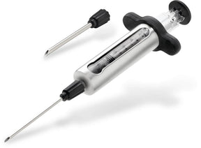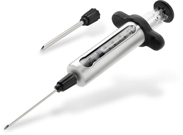 Selon le type de marinade, vous pouvez choisir entre deux aiguilles interchangeables. L’aiguille fine, idéale pour les sauces liquides, le beurre ou les marinades délicates, permet une injection précise. L’aiguille de plus grand calibre est parfaite pour les marinades contenant des petits morceaux d’ingrédients, tels que l’ail ou les herbes. Grâce aux brosses de nettoyage incluses, l'entretien est un jeu d’enfant, et un étui de rangement pratique permet de stocker la seringue en toute sécurité. Ajoutez cet accessoire à votre arsenal et préparez des repas savoureux et moelleux comme jamais auparavant.