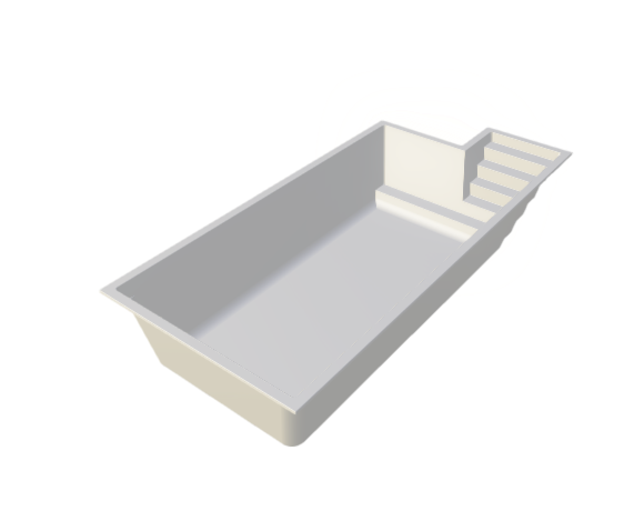 La piscine creusée en fibre de verre Tau avec ses marches à l’extérieur du bassin offre un design épuré et un bel espace de nage. Ce modèle, aménageable à moindre coût, est idéal pour des terrains de moyenne et grande dimension. Il peut-être proposé avec une plage à déversement ou un spa à déversement.